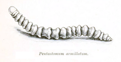 ↑R. Leuckart (1860). Bau und Entwicklungsgeschichte der Pentastomen nach Untersuchungen besonders von Pent. taenoides und P. denticulatum. C. F. Winter'sche Verlagshandlung, Leipzig. pp. vi + 160.