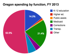 Oregon spent approximately 14.3 percent of its budget on elementary and secondary education during fiscal year 2013. School system revenue came primarily from state funds. Oregon spent the smallest percentage of its total budget on public education when compared to its neighboring states.
