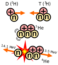 | (1) | D | + | T | → | 4He | (3.5 MeV) | + | n | (14.1 MeV) | |||||||
