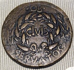 At the Settlement, “Augustus” nominally surrendered his official powers, and returned control of Rome to the Senate. By this action, he claims he “restored the Republic” – ‘’respublica restituta’’ – and the Senate agreed. However, they and the people together “begged” Augustus to retain some official power, which Augustus finally relented to, assuming the rank of ‘’princeps’’, or “first citizen,” and accepting the title of Consul for the year. For “restoring the Republic,” the Senate also voted Augustus the honor of the ‘’corona civica’’, or the “Civic Crown,” an honor given to soldiers who saved the lives of a fellow citizen in battle. It was argued that by restoring the Republic, Augustus had saved the freedom – and therefore the lives – of all its citizens.