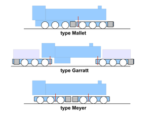 The conventional electric and diesel locomotive dual bogie design uses the same general configuration as the Meyer design but is not considered to be articulated.