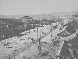 After Gojong's proclamation of Korea as the Korean Empire in 1897, Seoul was temporarily called Hwang Seong (황성; 皇城; lit. the imperial city). Much of modern development around this era was propelled by trade with foreign countries like France and the United States. For example, the Seoul Electric Company, Seoul Electric Trolley Company, and Seoul Fresh Spring Water Company were all joint Korean–U.S. owned enterprises.[50] Through these efforts,There were some modernization efforts by the late 19th century prior to annexation. Seoul became the first city in East Asia to have electricity, trolley cars, water, telephone, and telegraph systems all at the same time,[51]