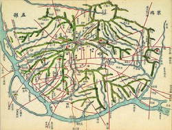 Wiryeseong (위례성; 慰禮城), the capital settlement of Baekje, was located within the boundaries of modern-day Seoul. Seoul was also known by other various historical names, such as Bukhansan-gun (북한산군; 北漢山郡, during the Goguryeo era), Namcheon (남천; 南川,[13] during the Silla era), Hanyang (한양; 漢陽, during the Northern and Southern States period), Namgyeong (남경; 南京, during the Goryeo era), and Hanseong (한성; 漢城, during the Joseon era). The word seoul was used colloquially to refer to the capital as early as the 17th century.[14] Thus, the Joseon capital of Hanseong was widely referred to as the seoul.[15] Due to its common usage, French missionaries called the Joseon capital Séoul (/se.ul/) in their writings, hence the common romanization Seoul in various languages today.