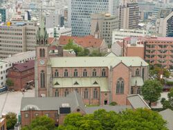 The Myeongdong Cathedral is a landmark of the Myeongdong, Jung District. Yakhyeon Catholic Church is the first Gothic church to be built in Korea. Yoido Full Gospel Church is a Pentecostal church affiliated with the Assemblies of God on Yeouido in Seoul. The St. Nicholas Cathedral, but sometimes called bald church, is the only Byzantine-style church in Seoul.