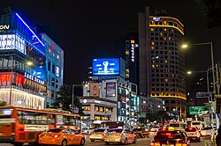 Seoul has three central business districts; the Downtown Seoul(CBD), Gangnam(GBD), and Yeouido(YBD).[114] The Downtown Seoul, which has 600 years of history as unparalleled business district in entire Korea, is now a densely concentrated area around Gwanghwamun and Cheonggyecheon with headquarters of major companies, foreign financial institutions, largest news agencies and law firms. Other two business districts are developed in 1970s and have different characteristic; while Gangnam is well known for tech, luxury and private education industries, Yeouido is famous for securities exchange and asset management.[115][116]