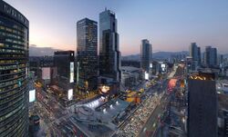 Seoul was rated Asia's most livable city, with the second-highest quality of life globally according to Arcadis in 2015 and a GDP per capita (PPP) of approximately $40,000. 15 Fortune Global 500 companies, including industry giants such as Samsung,[9] LG, and Hyundai, are headquartered in the Seoul Capital Area, which has major technology hubs, such as Gangnam and Digital Media City.[10] Seoul is ranked seventh in the Global Power City Index and the Global Financial Centres Index, and is one of the five leading hosts of global conferences.[11] The city has also hosted major events such as the 1986 Asian Games, the 1988 Summer Olympics, and the 2010 G20 Seoul summit.