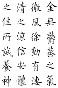 - ↑ 書 being here used as in 楷书/楷書, etc., and meaning 'writing style'.