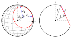 A Clelia curve is a curve on a sphere for which the longitude [math]\displaystyle{ \varphi }[/math] and the colatitude [math]\displaystyle{ \theta }[/math] satisfy the equation