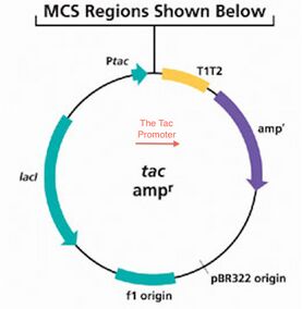 The tac promoter finds various applications. The tac promoter/operator (dubbed PTAC) is one of the most widely used expression systems. Ptac is a strong hybrid promoter composed of the –35 region of the trp promoter and the –10 region of the lacUV5 promoter/operator. The expression of PTAC is repressed by the lacI protein. The lacIq allele is a promoter mutation that increases the intracellular concentration of LacI repressor, resulting in the strong repression of PTAC. The addition of the inducer IPTG inactivates the LacI repressor. Thus, the amount of expression from PTAC is proportional to the concentration of IPTG added: low concentrations of IPTG result in relatively low expression from PTAC and high concentrations of IPTG result in high expression from PTAC. By varying the IPTG concentration the amount of gene product cloned downstream from PTAC can be varied over several orders of magnitude.[4][better source needed] For example, the PTAC system is used for fusion protein expression within the PMAL-C2X expression.<ref>{{Cite web | url = https://www.neb.com/applications/protein-expression-and-purification/coupled-protein-expression-and-purification/maltose-binding-protein-expression | title = Maltose Binding Protein Expression | NEB | last = Biolabs | first = New England | website = www.neb.com | access-date = 2016-02-26