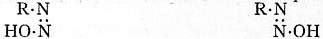 This assumption also shows the relationship of the diazonium hydroxides to other quaternary ammonium compounds, for most of the quaternary ammonium hydroxides (except such as have the nitrogen atom attached to four saturated hydrocarbon radicals) are unstable, and readily pass over into compounds in which the hydroxyl group is no longer attached to the amine nitrogen; thus the syn-diazo hydroxides are to be regarded as pseudo-diazonium derivatives. (A. Hantzsch, Ber., 1899, 32, p. 3109; 1900, 33, p. 278.) It is generally accepted that the iso-diazo hydroxides possess the oxime structure R·N:N·OH.