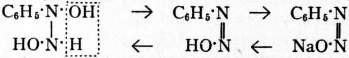 On adding the alkaline hydroxide to the solution, this hydrate is supposed to lose water, yielding the syn-diazo hydroxide, which then gives rise to a certain amount of the sodium salt (A. Hantzsch, Ber., 1898, 31, p. 1612),