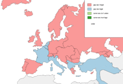 Iceland became the first country in the world to legalize same-sex marriage through a unanimous vote: 49–0, on June 11, 2010.[104] A month later, Argentina became the first country in Latin America to legalize same-sex marriage.