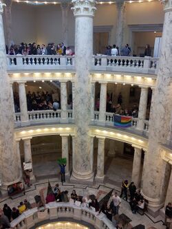 In early 2014 a series of protests organized by Add The Words, Idaho and former state senator Nicole LeFavour, some including civil disobedience and concomitant arrests,[107] took place in Boise, Idaho which advocated adding the words "sexual orientation" and "gender identity" to the state's Human Rights act.[108][109][110]