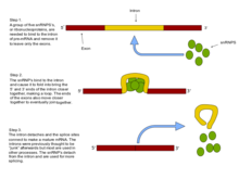 Splicing events can be experimentally altered[37][38] by binding steric-blocking antisense oligos, such as Morpholinos or Peptide nucleic acids to snRNP binding sites, to the branchpoint nucleotide that closes the lariat,[39] or to splice-regulatory element binding sites.[40]