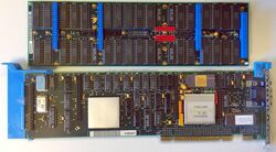 The NEC µPD7220 was the first implementation of a personal computer graphics display processor as a single large-scale integration (LSI) integrated circuit chip. This enabled the design of low-cost, high-performance video graphics cards such as those from Number Nine Visual Technology. It became the best-known GPU until the mid-1980s.[9] It was the first fully integrated VLSI (very large-scale integration) metal–oxide–semiconductor (NMOS) graphics display processor for PCs, supported up to 1024×1024 resolution, and laid the foundations for the emerging PC graphics market. It was used in a number of graphics cards and was licensed for clones such as the Intel 82720, the first of Intel's graphics processing units.[10] The Williams Electronics arcade games Robotron 2084, Joust, Sinistar, and Bubbles, all released in 1982, contain custom blitter chips for operating on 16-color bitmaps.[11][12]