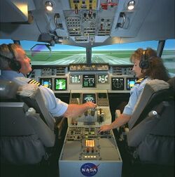A flight simulator is a device that artificially re-creates aircraft flight and the environment in which it flies, for pilot training, design, or other purposes. It includes replicating the equations that govern how aircraft fly, how they react to applications of flight controls, the effects of other aircraft systems, and how the aircraft reacts to external factors such as air density, turbulence, wind shear, cloud, precipitation, etc. Flight simulation is used for a variety of reasons, including flight training (mainly of pilots), the design and development of the aircraft itself, and research into aircraft characteristics and control handling qualities.[1]