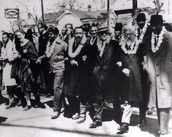 Heschel is a widely read Jewish theologian whose most influential works include Man Is Not Alone, God in Search of Man, The Sabbath, and The Prophets. At the Second Vatican Council, as a representative of American Jews, Heschel persuaded the Catholic Church to eliminate or modify passages in its liturgy which demeaned the Jews, or referred to an expected conversion of the Jews to Christianity. His theological works argued that religious experience is a fundamentally human impulse, not just a Jewish one. He believed that no religious community could claim a monopoly on religious truth.[14] For these and other reasons, Martin Luther King Jr. called Heschel "a truly great prophet."[15] Heschel actively participated in the Civil Rights movement, and was a participant in the third Selma to Montgomery march, accompanying Dr. King and John Lewis.[16]