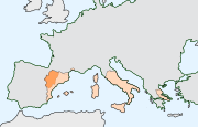 The Kingdom of Aragon (Template:Lang-an; Catalan: Regne d'Aragó; Latin: Regnum Aragoniae; Spanish: Reino de Aragón) was a medieval and early modern kingdom on the Iberian Peninsula, corresponding to the modern-day autonomous community of Aragon, in Spain . It should not be confused with the larger Crown of Aragon, which also included other territories—the Principality of Catalonia (which included the former Catalan Counties), the Kingdom of Valencia, the Kingdom of Majorca, and other possessions that are now part of France , Italy, and Greece—that were also under the rule of the King of Aragon, but were administered separately from the Kingdom of Aragon.