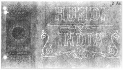 During the colonial era, the British government regarded the hundi system as indigenous or traditional, but not informal. They were reluctant to interfere with it as it formed such an important part of the Indian economy and they also wished to tax the transactions taking place within the system.[4] Official hundi forms were produced incorporating revenue stamps bearing the image of British monarchs, including Queen Victoria, and disputes between merchants often entered the court system, so in no way was the system an underground one even though it did not take place through normal banking channels.[5]