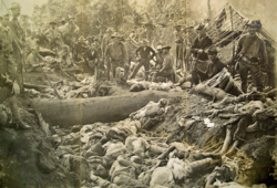 In the Bulgarian insurgency of the April Uprising in 1876 an estimate of 1,000 Muslims were killed.[294][295] During the Russo-Turkish War large numbers of Turks were either killed, perished, or became refugees. There are different estimates about the casualties of the war. Crampton describes an exodus of 130,000–150,000 expelled of which approximately half returned for an intermediary period encouraged by the Congress of Berlin. Hupchick and McCarthy point out that 260,000 perished and 500,000 became refugees.[296][297] The Turkish scholars Karpat and Ipek argue that up to 300,000 were killed and 1–1.5 million were forced to emigrate.[298][299] Members of the European press who covered the war in Bulgaria reported on the Russian atrocities against Muslims. Witness accounts from Schumla and Razgrad describe children, women, and elderly wounded by sabres and lances. They stated that the entire Muslim population of many villages had been massacred.[300] Recently uncovered photographs in the archive of the German Ministry of Foreign Affairs from the Russo-Turkish War 1877–1878 show the massacre of Muslims by the Russians in the region of Stara Zagora claiming to have affected some 20,000 Muslim civilians.[301]