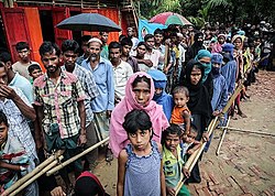Imperial Japanese forces slaughtered, raped, and tortured Rohingya Muslims in a massacre in 1942 and expelled hundreds of thousands of Rohingya into Bengal in British India. The Japanese committed countless acts of rape, murder, and torture against thousands of Rohingyas.[145] During this period, some 220,000 Rohingyas are believed to have crossed the border into Bengal, then part of British India, to escape the violence.[146][147] Defeated, 40,000 Rohingyas eventually fled to Chittagong after repeated massacres by the Burmese and Japanese forces.[148]