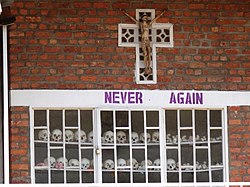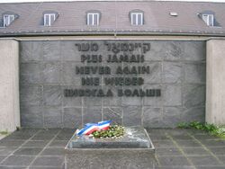 According to Aaron Dorfman, "Since the Holocaust, the Jewish community's attitude toward preventing genocide has been summed up in the moral philosophy of 'Never Again.'"[13] What this meant was that the Jews would not allow themselves to be victimized.[17] The phrase has been used in many official commemorations and appears on many Holocaust memorials and museums,[8][2] including memorials at Treblinka extermination camp[2] and Dachau concentration camp,[18] as well as in commemoration of the Rwandan genocide.[19]