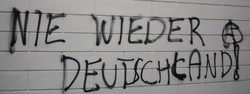 The initial meaning of the phrase, used by Abba Kovner and other Holocaust survivors, was particular to the Jewish community but the phrase's meaning was later broadened to other genocides.[13] It is still a matter of debate whether "Never again" refers primarily to Jews ("Never again can we allow Jews to be victims of another Holocaust") or whether it has a universal meaning ("Never again shall the world allow genocide to take place anywhere against any group"). However, most politicians use it in the latter sense.[7] The phrase is used commonly in postwar German politics, but it has different meanings. According to one interpretation, because Nazism was a synthesis of preexisting aspects of German political thought and an extreme form of ethnic nationalism, all forms of German nationalism should be rejected. Other politicians argue that the Nazis "misused" appeals to patriotism and that a new German identity should be built.[14]