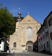 The first church on the cathedral site was built in the first half of the 5th century.[3] The Romanesque crypt was probably built under Bishop Tello (758-73). It contains remarkable paintings by Albrecht Dürer and Hans Holbein.[15] The current building was built between 1154 and 1270. In 1272 it was dedicated to Saint Mary of the Assumption. The round arch window along the center axis is the largest medieval window in Graubünden. The late-Gothic high altar was completed in 1492 by Jakob Russ.[35]