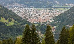Chur (German: [ˈkuːr] (locally) or [ˈxuːr]; Italian: Coira [ˈkɔira]; Sursilvan: Cuera Template:IPA-rm; Vallader: Cuoira Template:IPA-rm; Puter and Rumantsch Grischun: Cuira Template:IPA-rm; Surmiran: Coira; Sutsilvan: Cuera or Cuira; French: Coire [kwaʁ])[note 1] is the capital and largest town of the Switzerland canton of the Grisons and lies in the Grisonian Rhine Valley, where the Rhine turns towards the north, in the northern part of the canton. The city, on the right bank of the Rhine, is reputedly the oldest town in Switzerland.[1]