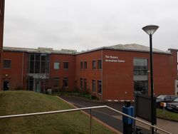 The university's main library is at the centre of its campus. It was opened by Queen Elizabeth II on 13 November 1964. The Royal Literary fund office is based at the Library, providing support for students around academic writing. The Library also houses a research support centre and a research hive for PhD students and research staff.[43] There is also a Skills Hub, training facilities, a support centre, a café and a Careers and Employability Centre.