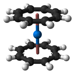 A few organoneptunium compounds are known and chemically characterized, although not as many as for uranium due to neptunium's scarcity and radioactivity. The most well known organoneptunium compounds are the cyclopentadienyl and cyclooctatetraenyl compounds and their derivatives.[136] The trivalent cyclopentadienyl compound Np(C5H5)3·THF was obtained in 1972 from reacting Np(C5H5)3Cl with sodium, although the simpler Np(C5H5) could not be obtained.[136] Tetravalent neptunium cyclopentadienyl, a reddish-brown complex, was synthesized in 1968 by reacting neptunium(IV) chloride with potassium cyclopentadienide:[136]