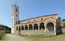 The spread of Catholicism affected the architecture of religious buildings, with a new Gothic style, mainly in the Center and North Albania. These areas were attached to the Catholic church and thus had greater Western connections. Both the Catholic and Orthodox churches operated in Durrës and the surrounding areas, and therefore both Western and Byzantine architectural styles were followed.[64] Western architecture could also be found in areas where Western rulers had possessions. Churches built in this form were built in Upper and Central Albania and were characterized by an emphasis on an East-West longitudinal axis with circular or rectangular apses. Among the most notable architectural monuments of this period include the Church of Shirgj Monastery near the village of Shirgj near Shkodër, the Church of Saint Mary in Vau i Dejës, and the Church of Rubik.[65] The former two churches were built in the 13th century AD while the latter in the 12th century AD. Most of the churches built in this period were decorated with murals.[65]