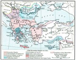 The Angevin resistance continued for some years in Kaninë, Durrës and Vlorë. However Durrës fell in Byzantine hands in 1288 and in the same year Byzantine Emperor Andronikos II Palaiologos renewed the privileges that his predecessor had granted to the Albanians in the Krujë region.[23] Kaninë castle was the last to fall to the Byzantines probably in 1294, while Corfu and Butrint remained in Angevin hands at least up to 1292.[28] In 1296 Serbian king Stephen Milutin took possession of Durrës. In 1299 Andronikos II Palaiologos married his daughter Simonis to Milutin and the lands he had conquered were considered as a dowry gift.[29]