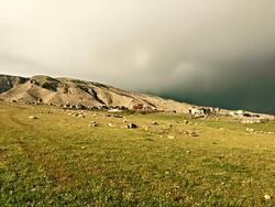 A plain or flatland is a flat expanse of land with a layer of grass that generally does not change much in elevation, and is primarily treeless. Plains occur as lowlands along valleys or at the base of mountains, as coastal plains, and as plateaus or uplands.[1] Plains are one of the major landforms on earth, where they are present on all continents, and cover more than one-third of the world's land area.[2]