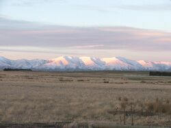 The Kakanui Range dominates the eastern horizon of the Maniototo Plain of New Zealand