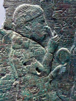 Glazed tile depicting a king and attendants, 9th century BC