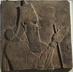 The kings also had religious and judicial duties. Kings were responsible for performing various rituals in support of the cult of Ashur and the Assyrian priesthood.[126] They were expected, together with the Assyrian people, to provide offerings to not only Ashur but also all the other gods. From the time of Ashur-resh-ishi I onward, the religious and cultic duties of the king were pushed somewhat into the background, though they were still prominently mentioned in accounts of building and restoring temples. Assyrian titles and epithets in inscriptions from then on generally emphasized the kings as powerful warriors.[120] Developing from their role in the Old Assyrian period, the Middle and Neo-Assyrian kings were the supreme judicial authority in the empire, though they generally appear to have been less concerned with their role as judges than their predecessors in the Old Assyrian period were.[127] The kings were expected to ensure the welfare and prosperity of the Assyria and its people, indicated by multiple inscriptions referring to the kings as "shepherds" (re’û).[120]