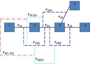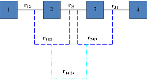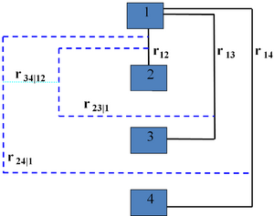 Bedford and Cooke [1] show that any assignment of values in the open interval (−1, 1) to the edges in any partial correlation vine is consistent, the assignments are algebraically independent, and there is a one-to-one relation between all such assignments and the set of correlation matrices. In other words, partial correlation vines provide an algebraically independent parametrization of the set of correlation matrices, whose terms have an intuitive interpretation. Moreover, the determinant of the correlation matrix is the product over the edges of (1 − ρ2ik;D(ik)) where ρik;D(ik) is the partial correlation assigned to the edge with conditioned variables i,k and conditioning variables D(ik). A similar decomposition characterizes the mutual information, which generalizes the determinant of the correlation matrix.[17] These features have been used in constrained sampling of correlation matrices,[10] building non-parametric continuous Bayesian networks [12][13] and addressing the problem of extending partially specified matrices to positive definite matrices [24] .[25]
