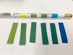 Vinegar syndrome is the release of acetic acid, which produces a strong vinegary odor.[2] AD strips are dye-coated paper strips that can detect and measure the severity of vinegar syndrome in film collections. The strips change color, shifting from a blue to green to level, based on the level of acidity found. If the AD strip level remains at blue, the film is in good condition and no deterioration is present. If the AD strip level turns yellow, the film condition is in critical condition, creating a possible handling hazard, and should be frozen immediately.[21]