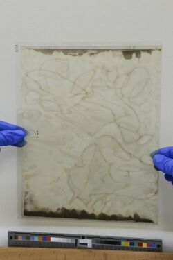 Cellulose nitrate (c. 1889 – c. 1950) is the first of film supports. It can be found as roll film, motion picture film, and sheet film. It is difficult to determine the dates when all nitrate film was discontinued, however, Eastman Kodak last manufactured nitrate film in 1951.[1] Cellulose nitrate is cellulose fibers modified with nitric acid to create a nitrocellulose solid.[1] Cellulose nitrate is extremely flammable and capable of burning even in the absence of oxygen and underwater. It has been the cause of many fires and losses of motion picture films, photographic materials, and archival records.[1]