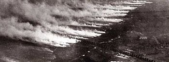Germany, the first side to employ chemical warfare on the battlefield,[1] simply opened canisters of chlorine upwind of the opposing side and let the prevailing winds do the dissemination. Soon after, the French modified artillery munitions to contain phosgene—a much more effective method that became the principal means of delivery.