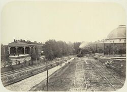 The Oktyabrskaya Railway linking Moscow and St. Petersburg crosses the city. Since 1850, there has been a railway connection between Tver and Moscow.[16] The primary Tver Railway Station has a locomotive and car shed, allowing it to service both passenger and cargo trains. In addition to the Tver Central Station, there are four minor stations within the city perimeter: Lazurnaya, Proletarskaya, Doroshikha and PPGT. The suburban railway service links Tver to Moscow, Bologoye, Torzhok. Most trains passing from Moscow to the north-west regions make a short stop in Tver. The high-speed train Sapsan, which connects Moscow with St. Petersburg, also makes stops in Tver, as well as the Tolstoy train connecting Moscow to Helsinki, Finland.