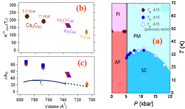 Coming to SC, one of the points which has attracted most attention is its interference (destructive or constructive ) with metallic magnetism . The cuprates are in that respect certainly exotic superconductors, in which the incidence of electron correlations and AF short range interactions can be essential to drive superconductivity, or at least enhance the SC transition temperatures. Many other materials have been shown to display situations where magnetism and SC are proximate to each-other in phase diagrams. In Fe superconductors (pnictides or chalcogenides) the phase diagrams are sometimes spanned by doping as in the cuprates, but in other families of compounds the phase diagrams are spanned by pressure control of the overlap integrals as for organic, heavy fermions or Cs3C60 compounds.