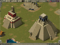 Players can also build Aztec-style pyramids to harness the power of magic from the five spheres of Magic: Sun, Star, Moon, Nature and Soul. The amount of magic available to the player is limited and measured in "Mana", Mana is used by Priests to cast spells, this Mana can be recharged by performing sacrifices at the Pyramids where priests are trained, the amount of Mana per unit depends on the Unit type. Each sphere of magic has different spells available with a vague focus on a specific type. Sun Priests specialise in attack spells, Moon in defensive ones, Nature Priests in Healing, Star Priests in 'debuff' or distraction and while Soul Priests are equally skilled in all fields.[2]