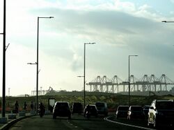 Post-war development in the Colombo area also involves the construction of numerous expressway grade arterial road routes. The first of these constructed is the Southern Expressway, which goes from Kottawa, a southern suburb of Colombo, to Matara City in the south of the country. Expressways constructed in the Colombo metropolitan area include the Colombo–Katunayake Expressway, which was opened in October 2013 and the Colombo orbital bypass Outer Circular Highway (Arthur C. Clarke Expressway). The Colombo-Katunayake Expressway (E03) runs from Peliyagoda, a northern suburb of Colombo, to Colombo International Airport and it is linked with one of the major commercial hubs and a major tourist destination of the country, the city of Negombo.[61][62]