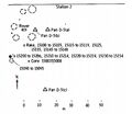 Station 2 map.[3] X indicates sample locations, 5-digit numbers are LRL sample numbers, rectangle is lunar rover (dot indicates TV camera), black spots are large rocks, dashed lines are crater rims or other topographic features, and triangles are panorama stations.
