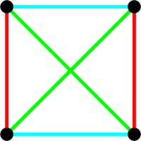 The simplest affine plane contains only four points; it is called the affine plane of order 2. (The order of an affine plane is the number of points on any line, see below.) Since no three are collinear, any pair of points determines a unique line, and so this plane contains six lines. It corresponds to a tetrahedron where non-intersecting edges are considered "parallel", or a square where not only opposite sides, but also diagonals are considered "parallel".