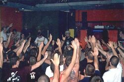 Following the failure of the National Democratic Party of Germany in the election of 1969, small groups committed to the revival of Nazi ideology began to emerge in Germany. The NPD splintered, giving rise to paramilitary Wehrsportgruppe. These groups attempted to organize under a national umbrella organization, the Action Front of National Socialists/National Activists.[85] Neo-Nazi movements in East Germany began as a rebellion against the Communist regime; the banning of Nazi symbols helped neo-Nazism to develop as an anti-authoritarian youth movement.[86] Mail order networks developed to send illegal Nazi-themed music cassettes and merchandise to Germany.[87]