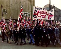 John Tyndall, a long-term neo-Nazi activist in the UK, led a break-away from the National Front to form an openly neo-Nazi party named the British National Party.[194] In the 1990s, the party formed a group for protecting its meetings named Combat 18,[195] which later grew too violent for the party to control and began to attack members of the BNP who were not perceived as supportive of neo-Nazism.[196] Under the subsequent leadership of Nick Griffin, the BNP distanced itself from neo-Nazism, although many members (including Griffin himself) have been accused of links to other neo-Nazi groups.[197]