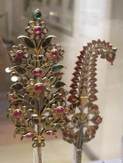 This enamel is used at the reverse side of the jewels in order to contrast the color of the gems (usually ruby or jade) with a stark white background.[1]